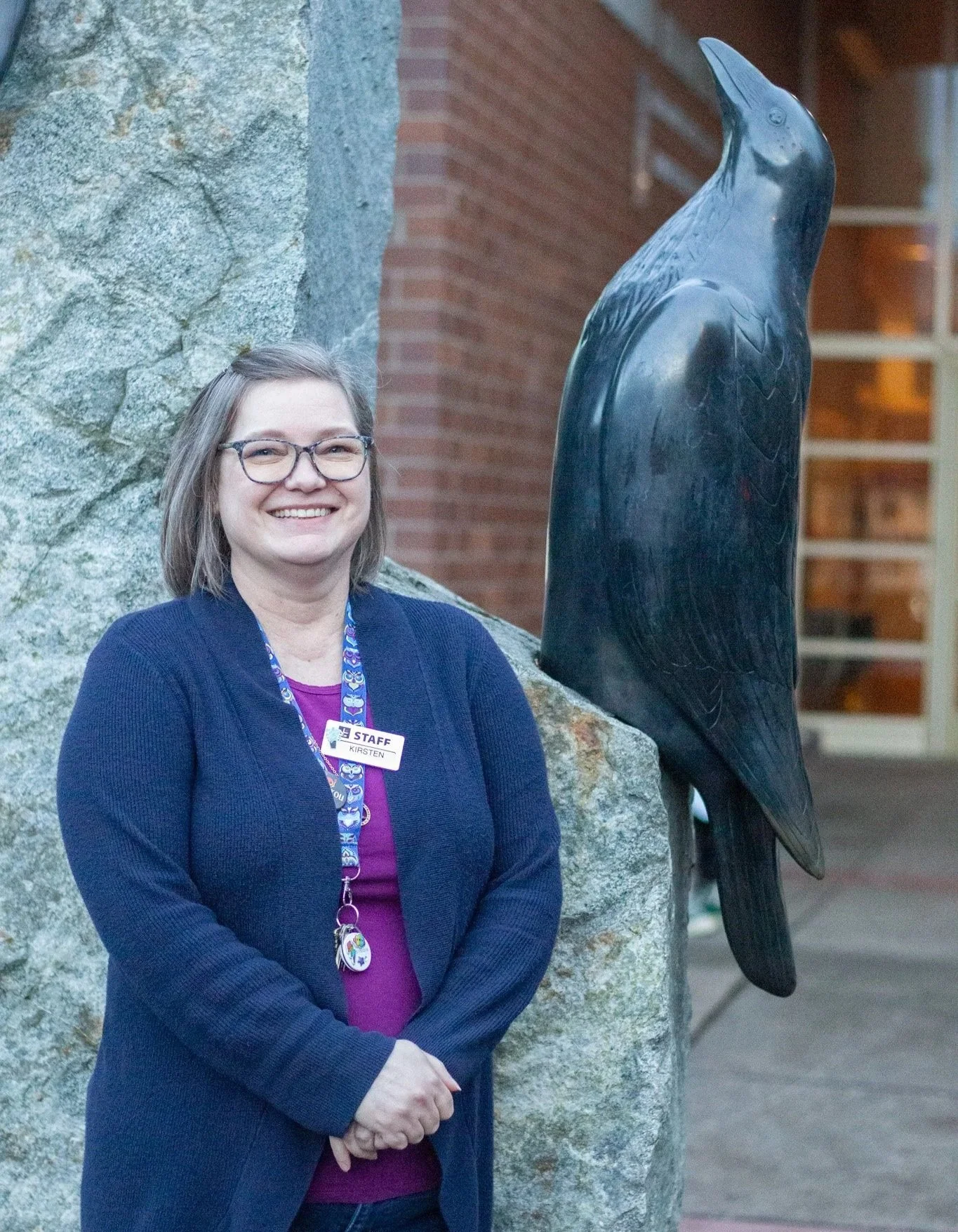 Ravens also adorn the necklace of Redmond Librarian and Information Services Manager Kirsten Erickson– they are Huginn and Muninn, mythological legends and pets of Odin who traveled the world to gather information for the Norse God.