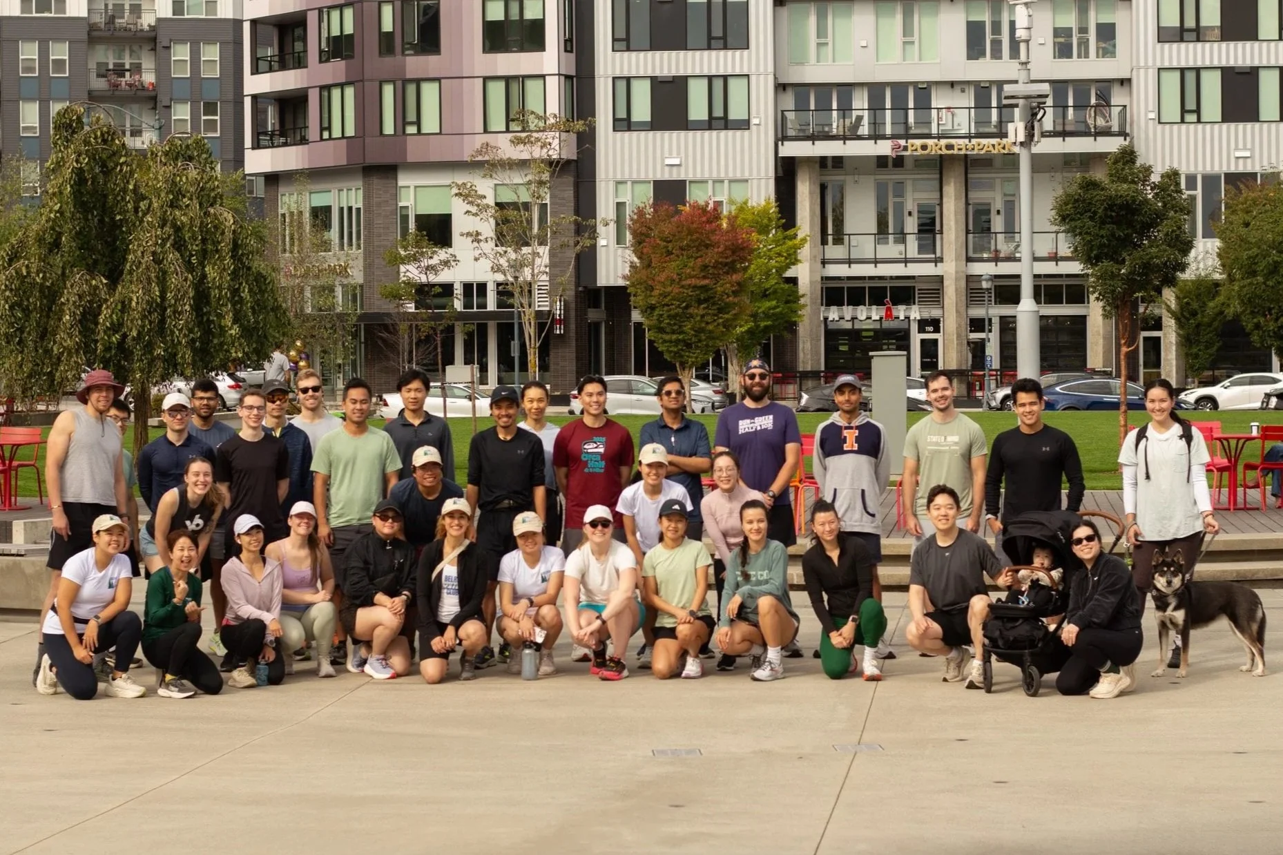Members of the BelRed Run Club pose for a picture in Downtown Redmond Park.